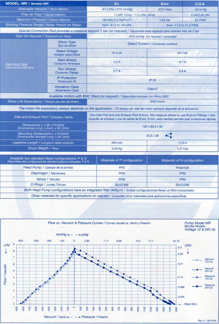 Micro Bombas de Membrana para vacío y presiÓn